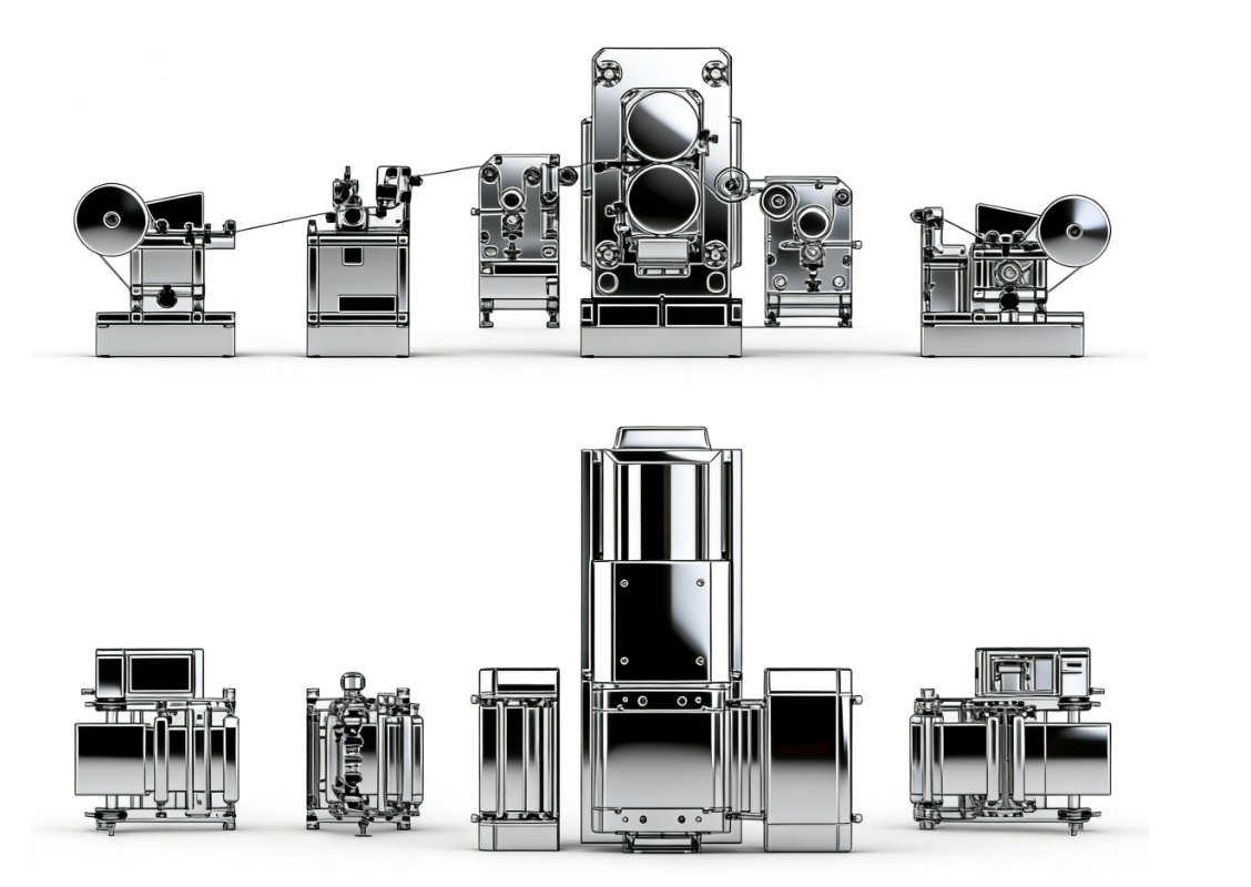 極片連軋生產(chǎn)線主要由放卷機(jī)、切邊除塵機(jī)、前張力隔斷、油壓對輥機(jī)、后張力隔斷、收卷機(jī)、電控系統(tǒng)、液壓系統(tǒng)、糾偏裝置等組成。